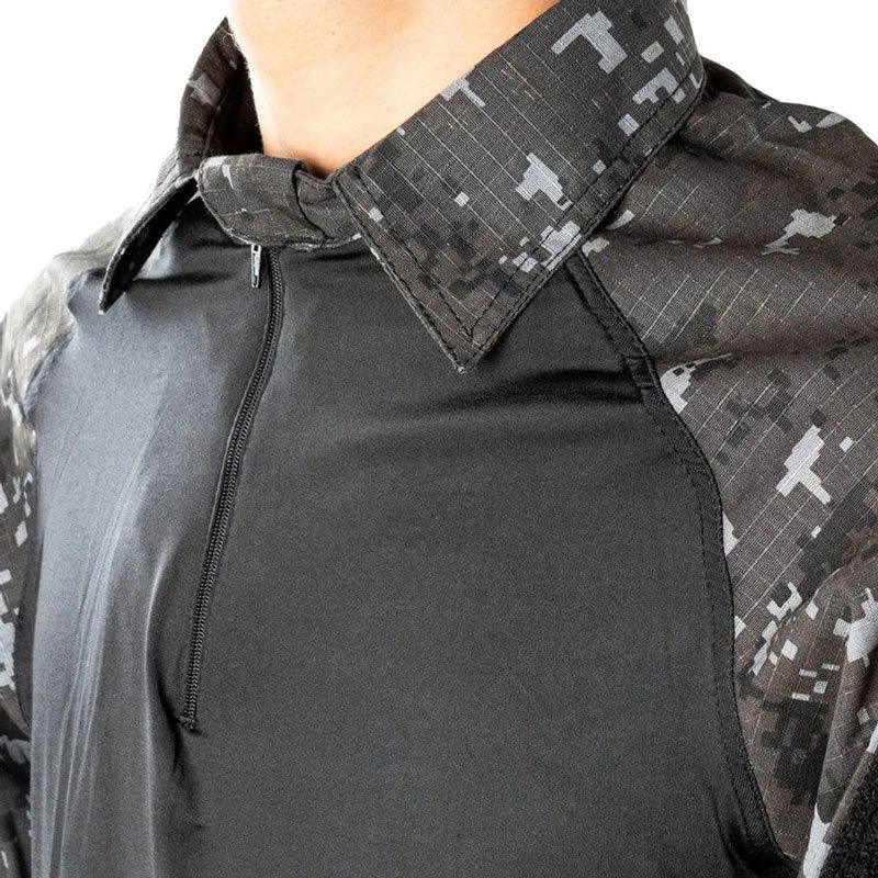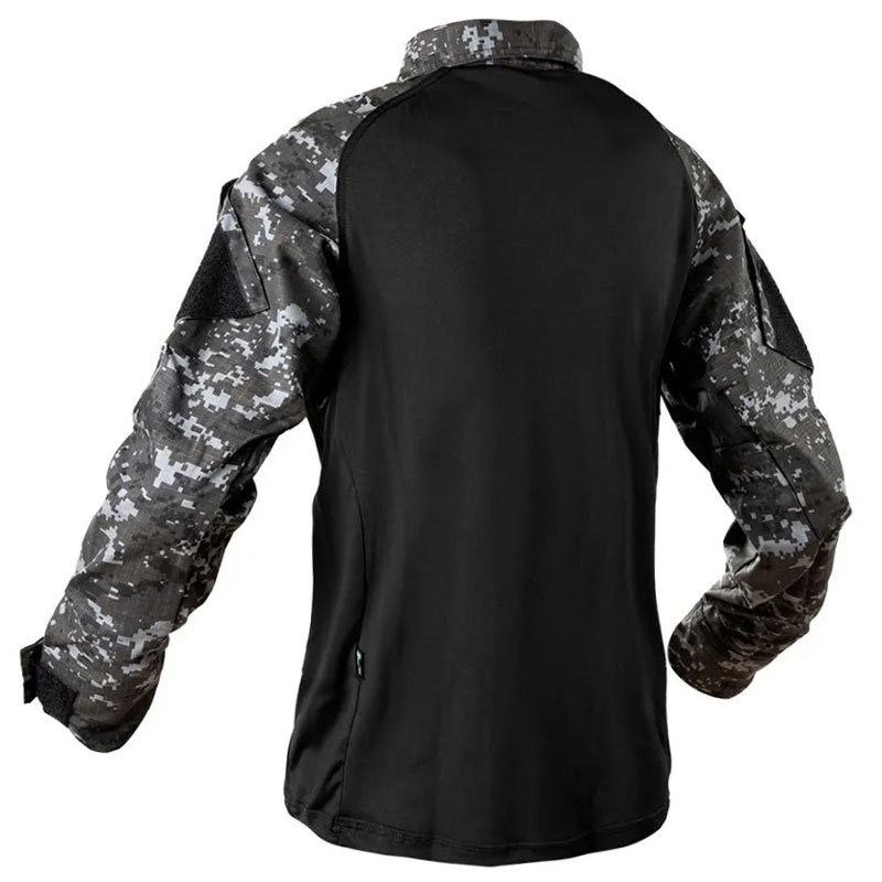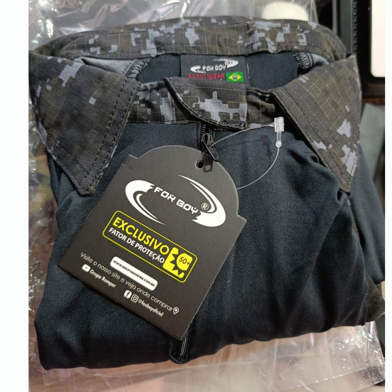 CAMISA COMBAT SHIRT CONFECCIONADA NOS TECIDOS CONFORME DESENHO TÉCNICO. FRENTE E COSTAS E LATERAIS TECIDO: MALHA DINAMIC ICE MICR. UV. COMPOSIÇÃO; 70% POLIAMIDA E 10% ELASTANO. FRENTE COM ABERTURA FECHADA POR ZÍPER YKK QUE TERMINA NA EXTREMIDADE SUPERIOR DA GOLA. CORPO COM RECORTES LATERAIS ERGÔNOMICO ENTRE A FRENTE E A COSTA, QUE SE ESTENDEM DA EXTREMIDADE DA PEÇA ATÉ A MANGA, INDO ATÉ UM POUCO ALÉM DAS AXILAS FUNCIONADO COMO RESPIRADOR A FIM DE PROPORCIONAR MAIS CONFORTO AO USUÁRIO. GOLA: GOLA ALTA (TIPO PADRE) EM TECIDO RIP STOP COM PROTEÇÃO UV 50+ 70% POLIÉSTER E 30% ALGODÃO. COM LARGURA DE 6 CM NA PARTE DA FRENTE E 7 CM NA PARTE DAS COSTAS. ABERTURA DA FRENTE COM FECHAMENTO EM ZÍPER SINTÉTICO (NYLON) COM TRAVA AUTOMÁTICA, NA COR DA PEÇA. O ZÍPER POSSUI EM SUAS EXTREMIDADES UMA PROTEÇÃO SOBREPOSTA FEITA EM TECIDO RIP STOP COM 4 CM DE LARGURA QUE SE ESTENDE EM TODA SUA EXTENSÃO. UM DOS TECIDOS SE ESTENDE A 2,5 CM PARA PARTE EXTERNA DA GOLA FORMANDO UMA ABA. A FUNÇÃO DESTA ABA É EVITAR O ATRITO DO QUEIXO DO USUÁRIO COM O CURSOR DO ZÍPER. MANGA: TIPO RAGLAN TECIDO RIP STOP COM PROTEÇÃO UV 50+ 70% POLIÉSTER E 30% ALGODÃO. CONTENDO DOIS BOLSO UM EM CADA MANGA REFORÇADO POR TRAVETES NOS CANTOS SUPERIORES, COM FOLE 2 CM DE PROFUNDIDADE, NA PARTE VOLTADA PARA TRASEIRA E NA PARTE INFERIOR. BOLSO MEDINDO 17 CM DE COMPRIMETO POR 15 CM DE LARGURA CONTENDO UM VELCRO FÊMEA DE 11 CM DE LARGURA POR 17 CM DE COMPRIMENTO, PORTINHOLAS REFORÇADAS POR TRAVETES NOS CANTOS, MEDINDO 6 CM DE COMPRIMENTO E 15 CM DE LARGURA, CONTENDO UM VELCRO FÊMEA NA PARTE EXTERNA DE 11 CM DE LARGURA POR 5 CM DE COMPRIMENTO. FECHADA POR VELCRO MACHO NA FACE INTERNA DE 2,5 CM DE LARGURA POR 9 CM DE COMPRIMENTO, E UM PUXADOR EMBORRACHADO PARA MELHOR PRATICIDADE DA ABERTURA DA PORTINHOLA. POSSUI UM REFORÇO DE COTOVELO, MEDINDO 9 CM NA PARTE SUPERIOR, 15,5 CM NO MEIO, 10 CM NA PARTE INFERIOR E 28 CM DE COMPRIMENTO, COM JOGO DE COSTURAS EM FORMA DE X. POSSUI DUAS PENCES NAS EXTREMIDADES DA MANGA DO LADO DAS COSTAS, COM 1 CM DE PRONFUNDIDADE E 6 CM DE ESPAÇO ENTRE ELAS, E COMPRIMENTO ATÉ O REFORÇO DO COTOVELO. MANGA COM BAINHA DE 6 CM. AJUSTADOS POR LAPELAS PRESA NA COSTURA DE UNIÃO DAS EXTREMIDADES DA MANGA. LAPELA MEDINDO 9 CM DE COMPRIMENTO POR 5 CM DE LARGURA. A LAPELA POSSUI UM VELCRO TIPO MACHO FIXADO NA FACE INTERNA, MEDINDO 5 CM DE LARGURA POR 5 CM DE COMPRIMENTO. EM CIMA DA BAINHA DA MANGA E FIXADO UM VELCRO FÊMEA DE 5 CM DE LARGURA POR 17 CM DE COMPRIMENTO. SERÁ FIXADA NA PARTE DA FRENTE DA MANGA A 4 CM DE DISTÂNCIA DA COSTURA DE FECHAMENTO DA MESMA. BAINHA DA BARRA: MEDINDO 2 CM DE LARGURA FEITA NA MÁQUINA GALONEIRA COM 3 AGULHAS. Garantia de