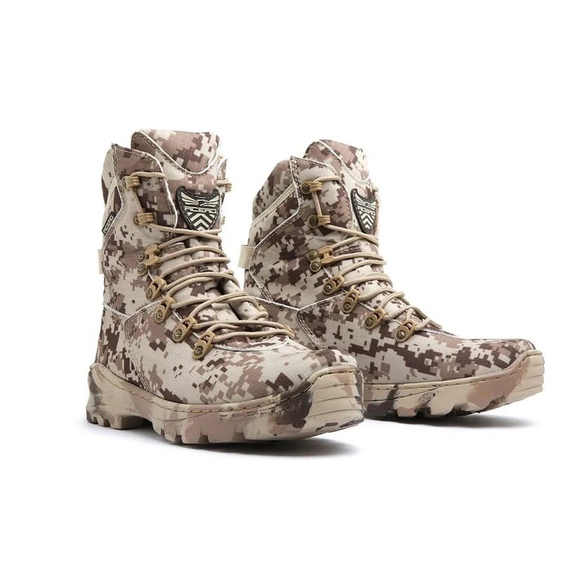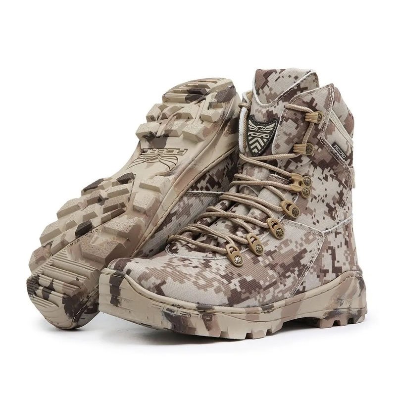 Bota Acero Digital Desert , é confortável e resistente. INFORMAÇÕES TÉCNICAS 1 – Nylon Cordura 500 (alta durabilidade) 2 – Reforço interno de EVA 2 mm dublado com manta tramada de 1 mm 3 – Forro de Confratec Air (tratamento anti bacteriano e anti-fungos) 4 – Reforço no bico e traseira termoplásticos de 2,5 mm tramado frente e verso 5 – Atacadores de Poliamida 6 – Passadores em nylon anti ferrugem 7 – Solado Acero Ultra Ruber feito em borracha antiderrapante e resistente 8 – Palmilha de conforto em GEL de 15 mm de altura no salto e 9 mm na frente 9 – Palmilha de montagem em Plantex 2mm com reforços em fibra de 4 mm 10 – Proteções em polietileno rígido