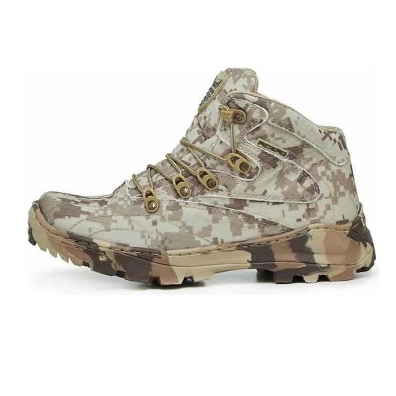 O coturno Digital Desert é o nosso modelo confeccionado em RIP STOP de alta qualidade. O material Rip Stop consiste no entrelaçamento de fios, criando uma resistente superfície de bloqueio, tornando-se um dos materiais mais resistente a rasgos e perfurações. Sendo um dos tecidos mais usados em calçados pelos militares do exército, policiais e bombeiros. Acompanhado por Palmilhas em Gel PU, que te dá maior conforto. O solado de borracha com grip antiderrapante, faz com que você se sinta muito seguro ao caminhar. Visando a rapidez ao calçar, o nosso modelo é equipado com os passadores de Saque Rápido e a função de Secagem Rápida que possibilita estar sempre pronta para o uso. Ficha Técnica: Confeccionada em Rip Stop / Reforço interno de EVA 2 mm / Reforço no bico e traseira de termoplásticos de 2,5 mm / Cadarços de Poliamida / Passadores em nylon Antiferrugem / Solado Acero Ultra Ligth Technology com Grip Antiderrapante / Palmilha em Gel PU / Pesando aproximadamente 1,5 Kg (Ref. ao par na numeração 40).