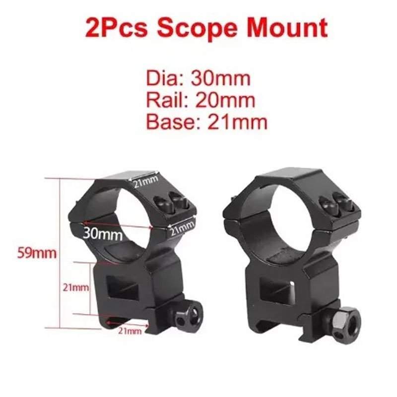 Características: 1. Fits todos os escopos com o mesmo tubo do corpo do tamanho. 2. Fits 11mm encaixa 20mm picatinny trilhos base montagem. 3. Feito da liga de alumínio contínua para suportar choque e recuo. 4. Complete com o pino da parada e o dispositivo travando contínuo. Especificações: Monte diâmetro do anel: 30mm Trilho base: 20mm Altura base: baixa/alta Atura 59mm, diametro 30mm e para trilho de 20 a 23mm certo como você precisa, pls permitir 1-2mm manual medição erro) Pacote incluído: 2pcs escopo monta anel 1Pc Chave sextavada Garantia de fábrica: 7 dias