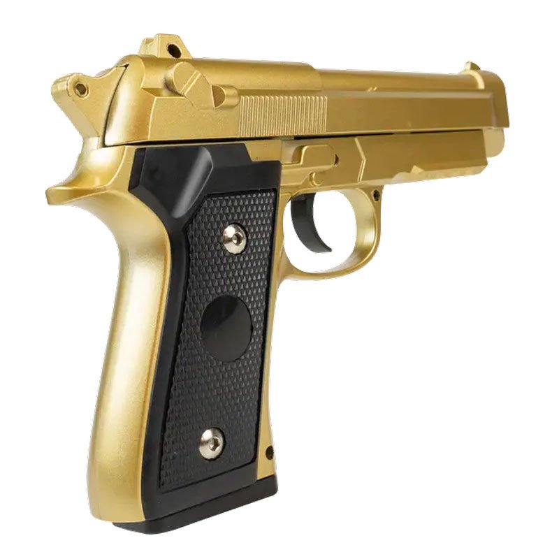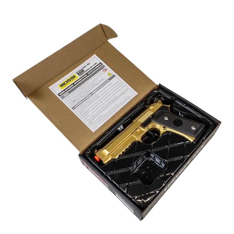A Pistola Airsoft PT92 V22 Gold 6 mm é um modelo spring (mola) com design inspirado na clássica PT92, apresentando acabamento dourado metalizado, que confere grande apelo visual e destaque no ponto de venda. Funciona por ação manual (tiro a tiro), ideal para uso recreativo, colecionismo e iniciantes no airsoft. Distribuída no Brasil pela Rossi Airguns Airsoft. Trata-se de um item estratégico para datas promocionais, kits de entrada e ações de impulso no varejo. Ideal para consumidores que buscam: Visual imponente e acabamento diferenciado Praticidade e facilidade de uso Equipamento para lazer, hobby ou coleção Aumente seu ticket vendendo junto com acessórios complementares, como: BBs 6 mm (preferencialmente 0.12g) Alvos para treino recreativo Coldres táticos ou cases simples Kits básicos de manutenção e transporte Tipo de Ação Mola Calibre 6,0 mm Modo de Disparo Repetição Manual Engatilhamento Ação Manual Por Ferrolho Munição Utilizada Esfera de Plástico Velocidade Máxima (m/s) 40 M/s Peso Munição Referência Velocidade (g) 0,20 g Energia (joule) 0,1 Joule Peso do Produto 520 g Comprimento do Produto 215 mm Material do Produto Metal/polímero Cano (comprimento) 80 mm Cano (acabamento) Polímero Capacidade de Munição 13 Trava de Segurança Não Possui Alça de Mira Fixa Fibra Óptica Não Possui Massa de Mira Fixa Trilho (tipo) Picatinny Trilho (tamanho) 22 mm Ferrolho Móvel Hop up Não Possui Hop up (material) Não Possui Diâmetro Interno do Cano 6,08 mm Cor do Item Dourado E Preto Ponteira (cor) Laranja Ponteira (material) Polímero Velocidade Máxima (fps) 131 Fps Peso Munição Referência Velocidade (grai 3,08 Grain Indicação de Uso Recreação